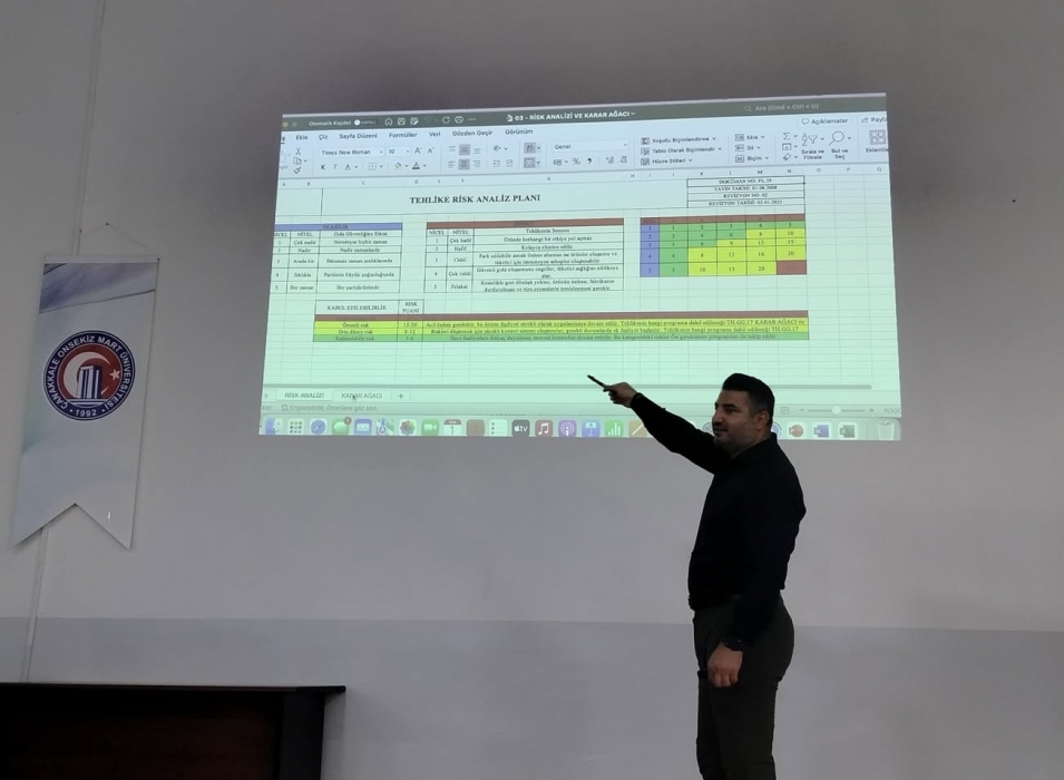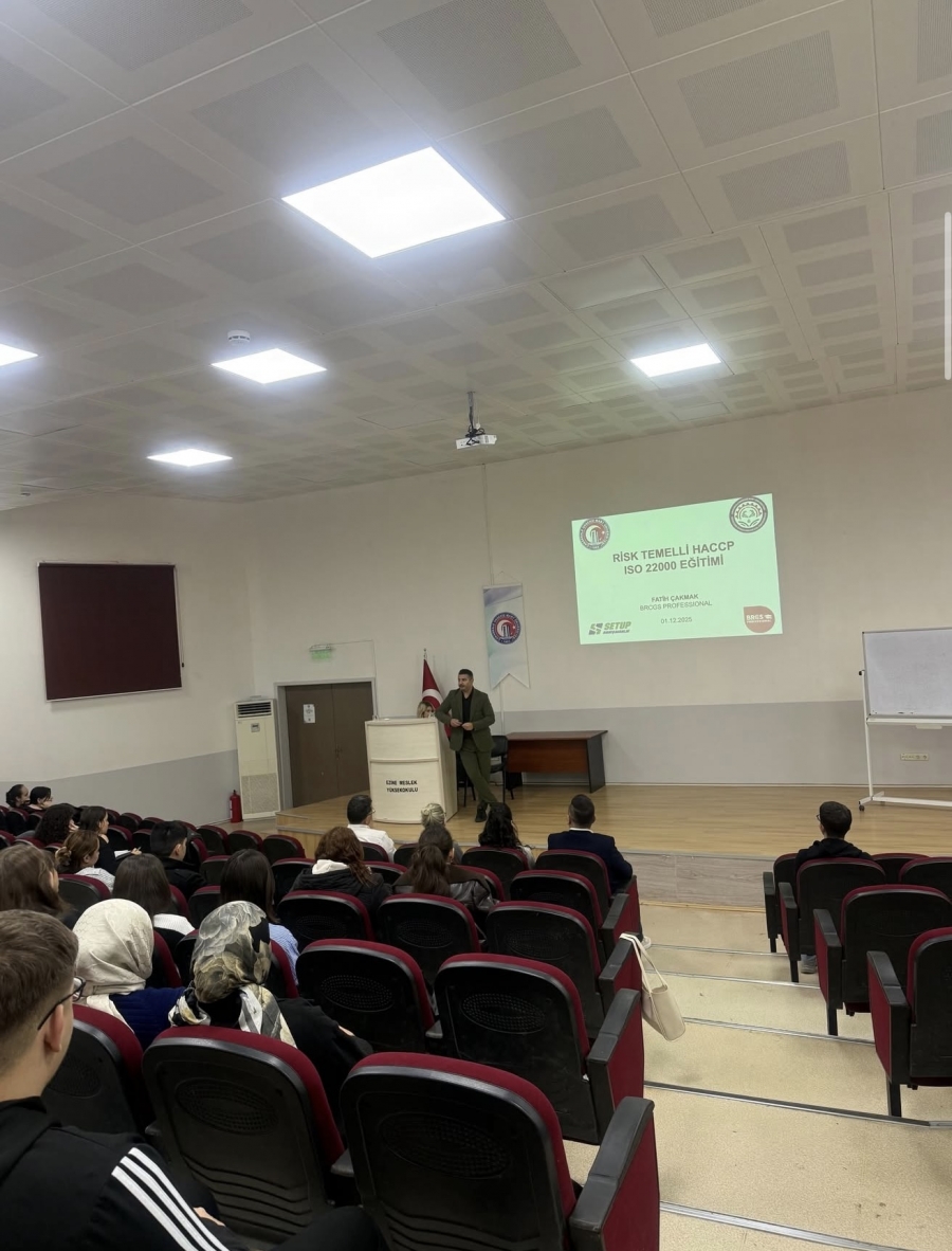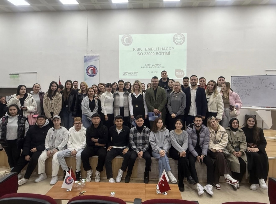 Gıda İşleme Bölümü öğrencilerine gıda sektörüne yönelik örneklerle desteklenen ISO 22000 Temel Bilgilendirme ve Risk Temelli HACCP eğitimi verildi. Ögrencilere, gıda üretim süreçlerinde tehlike analizi, kritik kontrol noktalarının belirlenmesi ve uluslararası standartlara uygun üretim prensipleri uygulamalı olarak aktarıldı.